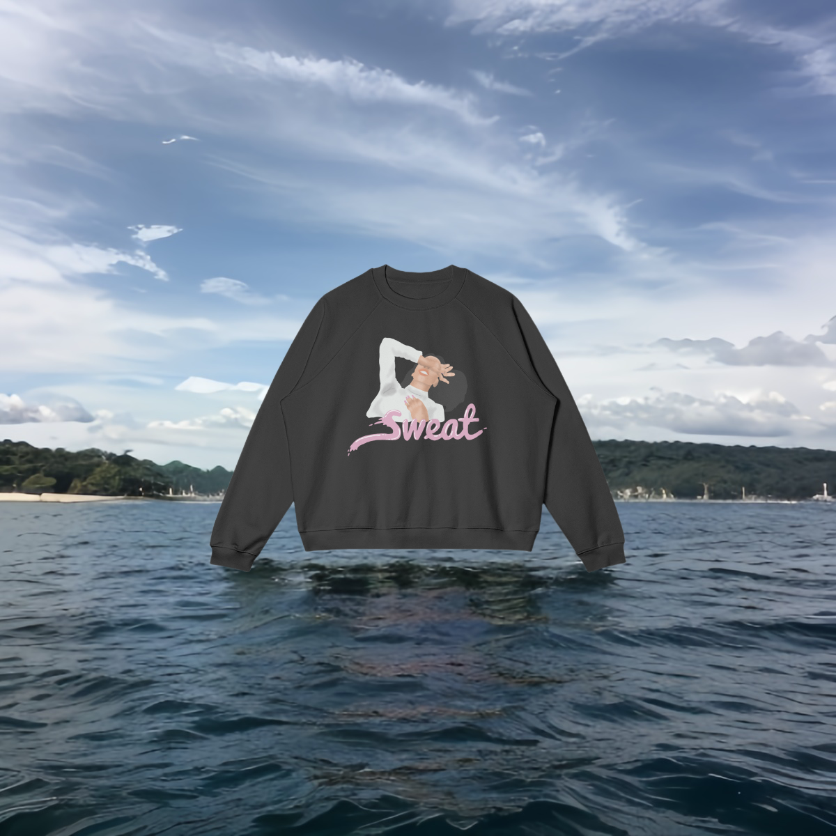 Cosy, black crewneck sweater made from heavyweight 380g/m² combed cotton fleece. Featuring a loose fit with raglan sleeves and a fleece-lined interior, this sweater blends quality, simplicity, and comfort. Finished with the official Sweat logo by Inari Sirola and illustration by Bel Mehta.